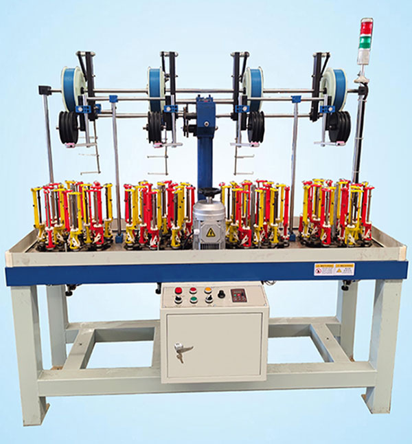 用途:織帶(鞋帶、服飾帶、松緊帶、波浪帶、滾邊帶、肩條帶等),測(cè)量繩、手提繩、拖車?yán)K、工具用繩,高空作業(yè)繩等各種繩帶的編織機(jī)。